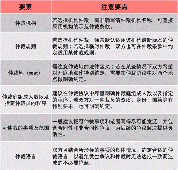 - 起草仲裁协议时的注意要点