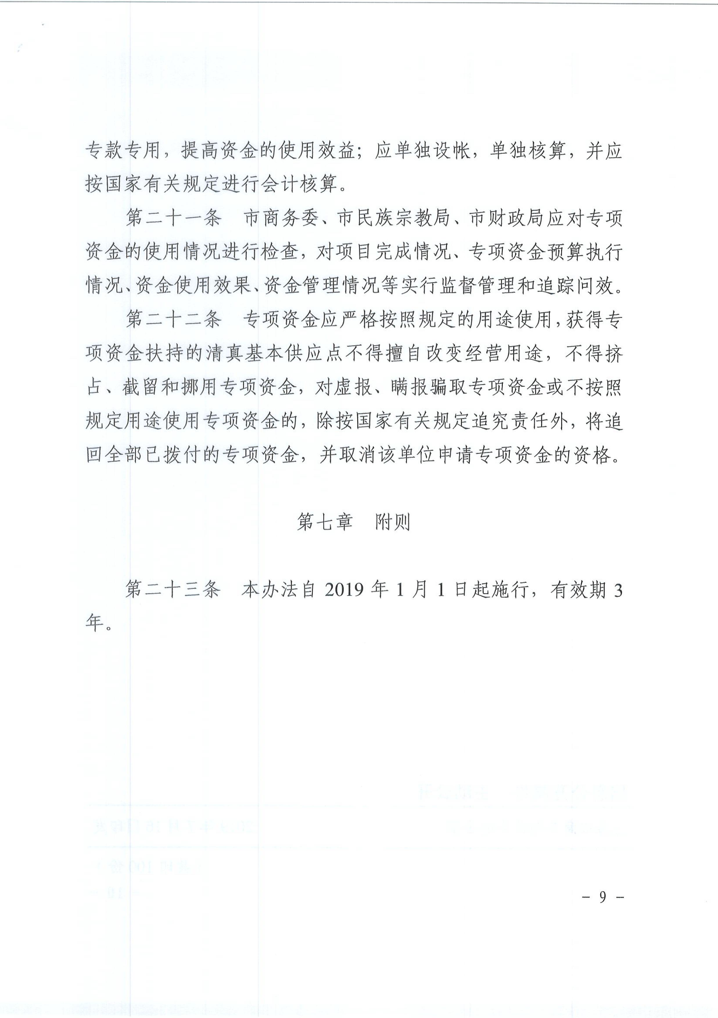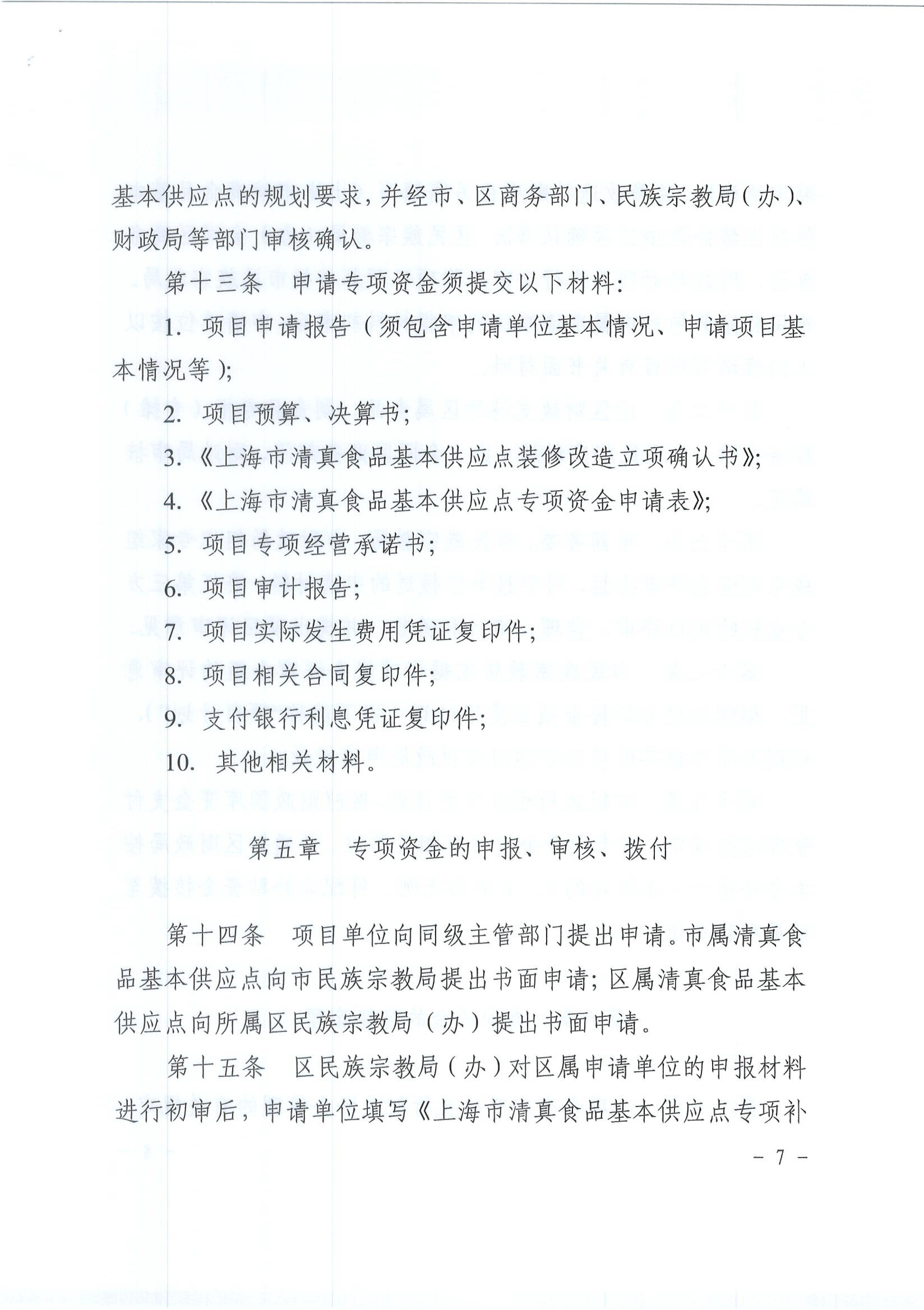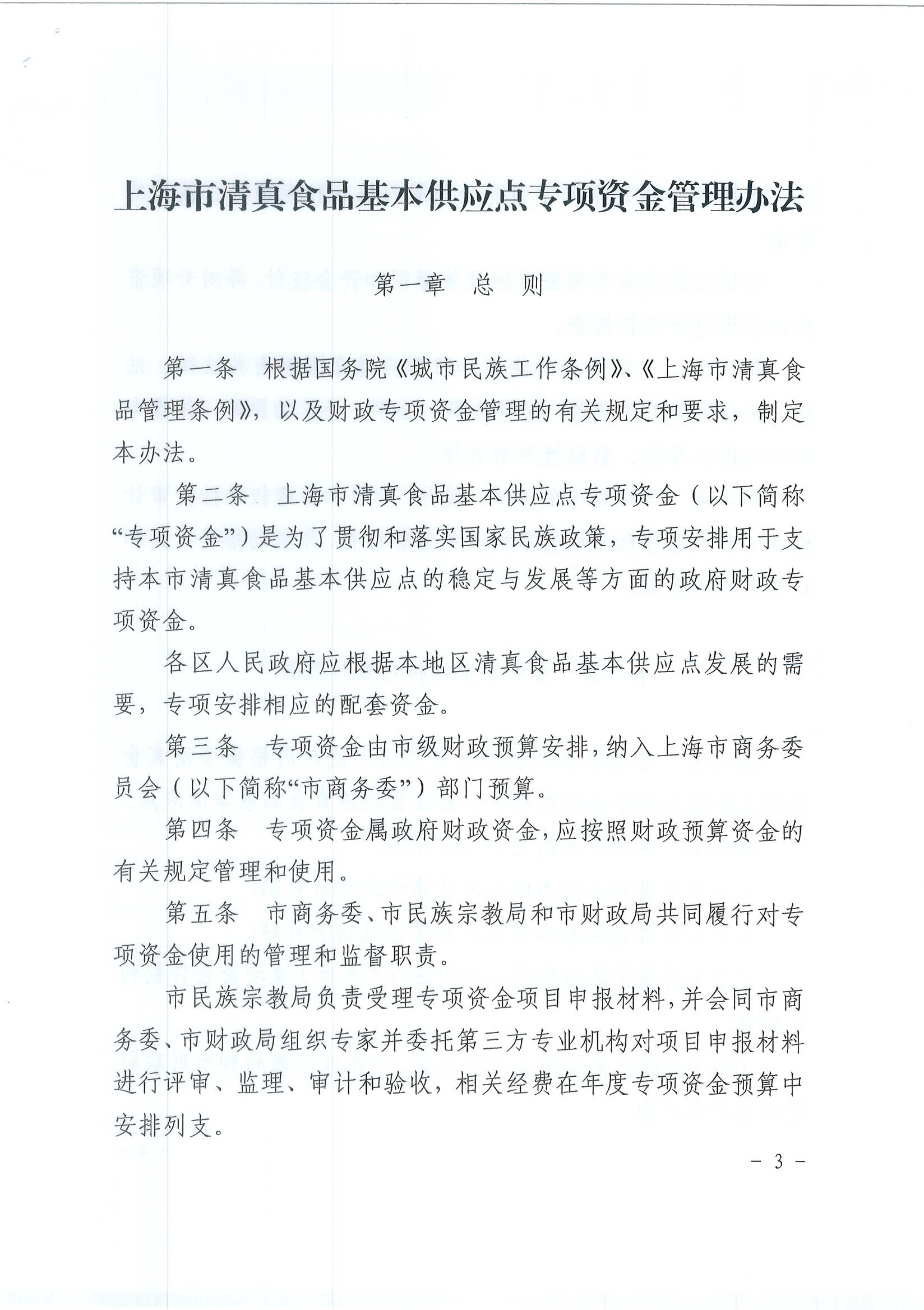 2019年市商务委市民宗局市财政局关于印发《上海市清真食品基本供应点专项资金管理办法》的通知