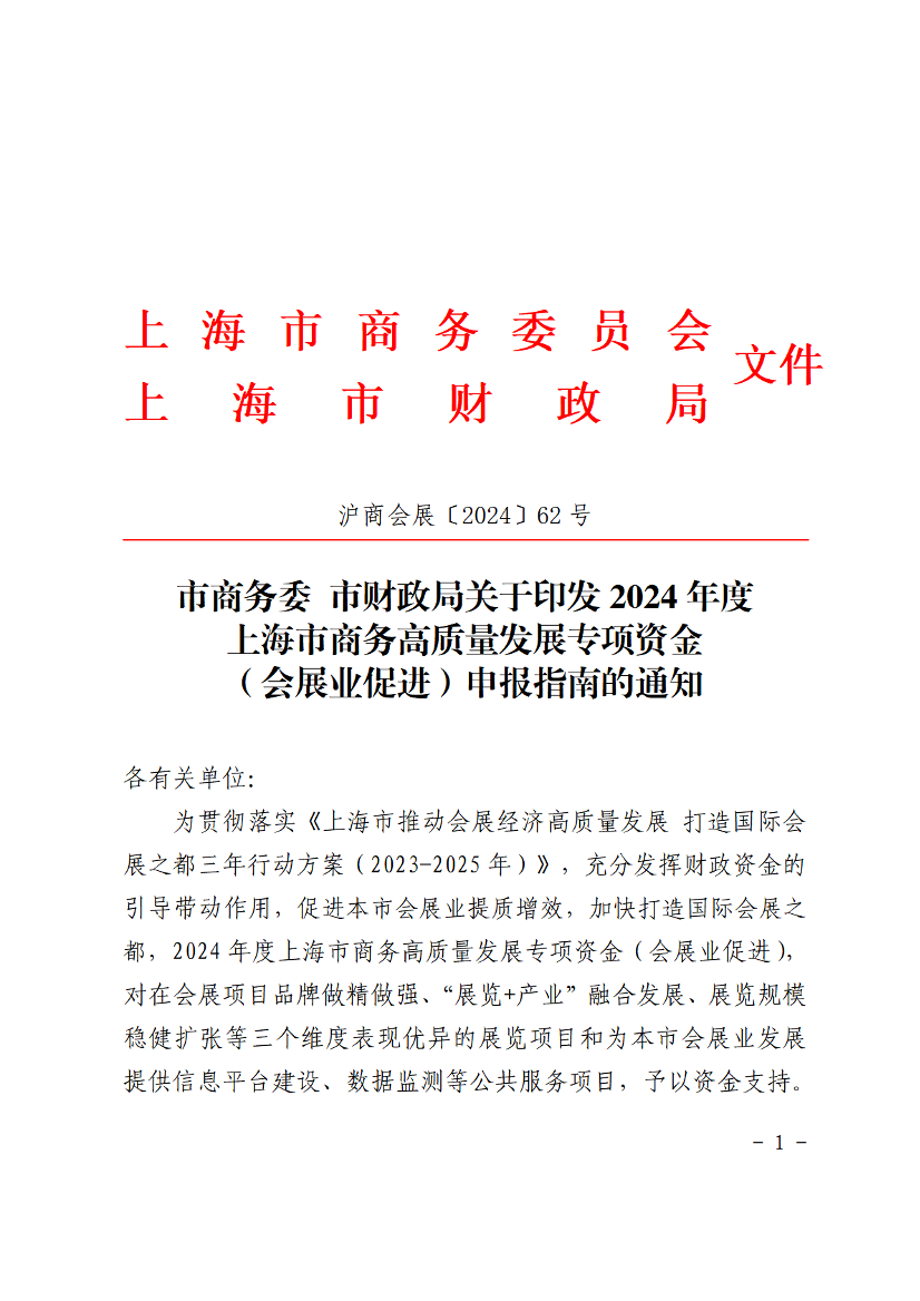 市商务委 市财政局关于印发2024年度上海市商务高质量发展专项资金(会展业促进)申报指南的通知